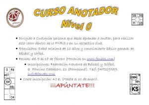 La Federación Navarra de Béisbol y Sófbol convoca a través del Colegio de Anotadores, el Curso de Anotador Nivel 0, dirigido a todas las personas que se quieran iniciar en el mundo de la anotación, para desarrollar esta labor en las competiciones de la FNBS o dentro de su propio club.