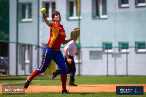 Las dos jugadoras navarras estuvieron en el roster del equipo nacional en el Campeonato de Europa Absoluto de Sófbol, un europeo clave ya que las 6 primeas selecciones accedían al preolímpico de Utrecht. Un total de 23 equipos, encuadrados en 4 grupos, lucharon por pasar a la segunda fase. España comenzó su andadura con dos victorias claras frente a Austria (8-1) y Ucrania (10-1). Uxua jugó de Right field, e Itziar jugó en tercera base en el equipo titular. Al ataque, Uxua logró 1 hit de 3 veces al bate. En la segunda jornada llegó el partido clave, ya que España derrotó a una de las favoritas, Israel, equipo compuesto por jugadoras americanas nacionalizadas. La victoria fue épica, emocionante y brillantísima, con un 5 – 4 final para las nuestras. Uxua bateó 2 de 4, e Itziar defendió con coraje la 3ª base. Beatriz Parejo, colaboradora habitual de la FNBS en clinics de Pitcheo, fue la lanzadora titular con 5 entradas lanzadas en un gran partido.