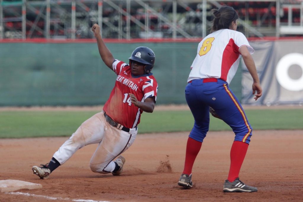 En el primer partido del Clasificatorio, España comenzó su andadura contra Gran Bretaña, una de las grandes novenas del torneo: pese al buen juego, con llegadas a base, hits y buenas defensas –destacó esta cogida de Uxua Modrego en el centerfield– no se logró la sorpresa: 9-2 fue el resultado final, pese a ir 2-1 al final de la 3ª entrada. Pero dos homeruns de GBR dieron al traste con las opciones de España. Uxua Modrego impulsó la primera carrera del Preolímpico, un dato para la historia.
