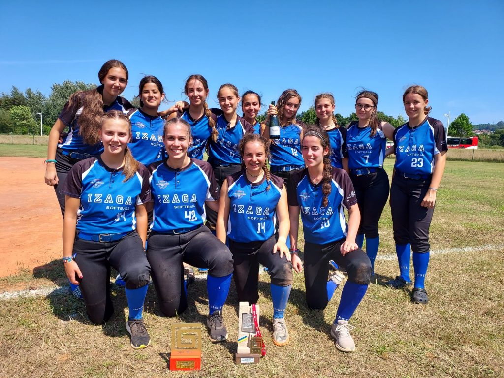 Todo el mundo en el sófbol nacional sabe que IZAGA tiene una de las mejores y más prometedoras canteras del sófbol. Ya el año pasado, su equipo sub 15 se proclamó campeón de España en esta categoría, y el pasado junio, el equipo sub 13 logró también el Campeonato de España de Clubes , en un campeonato disputado en Navarra… Pero el ascenso logrado este año en Asturias pone el broche de oro a una trayectoria de trabajo paciente desde su nacimiento en 2016, de muchos esfuerzos de entrenadoras, directivas, jugadoras y familias…y abre una nueva etapa para Izaga en la Spanish Softball League 2023 a todos los niveles y para el sófbol femenino navarro.