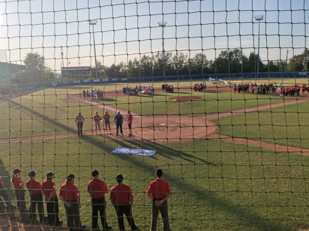 Así, tanto los organizadores del Collecchio Baseball and Softball Club, -excelente trabajo el suyo– como la Federación Europea, tenían gran interés en que el EMRYT 2022 fuese un éxito deportivo y organizativo, para relanzar este evento tras los años covid. Y desde luego que así ha sido… 8 equipos de 6 países se han desplazado a Collecchio, una pequeña localidad cerca de Parma (con unas instalaciones que de nuevo generan nuestra sana envidia) en la que Massimo Romeo -un histórico promotor del sófbol femenino italiano- fundó el trofeo que lleva su nombre. De hecho, Romeo falleció el año pasado, siendo homenajeado en la ceremonia inaugural.