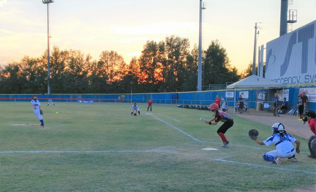 Segundo strike out de la última entrada. Helena y Nahia ya presienten la victoria…Poco después, Marta Echeverría logrará el definitivo «ground out 6-3». Y se desata la alegría… Foto cortesía de #Emryt CBS Collechio.