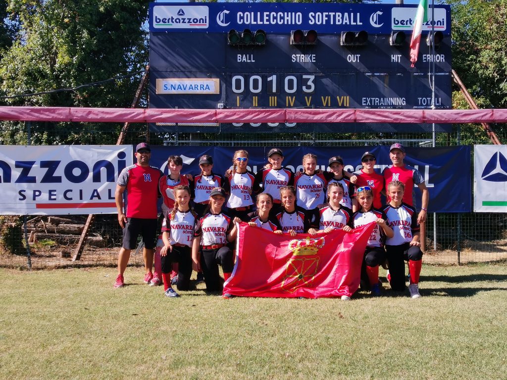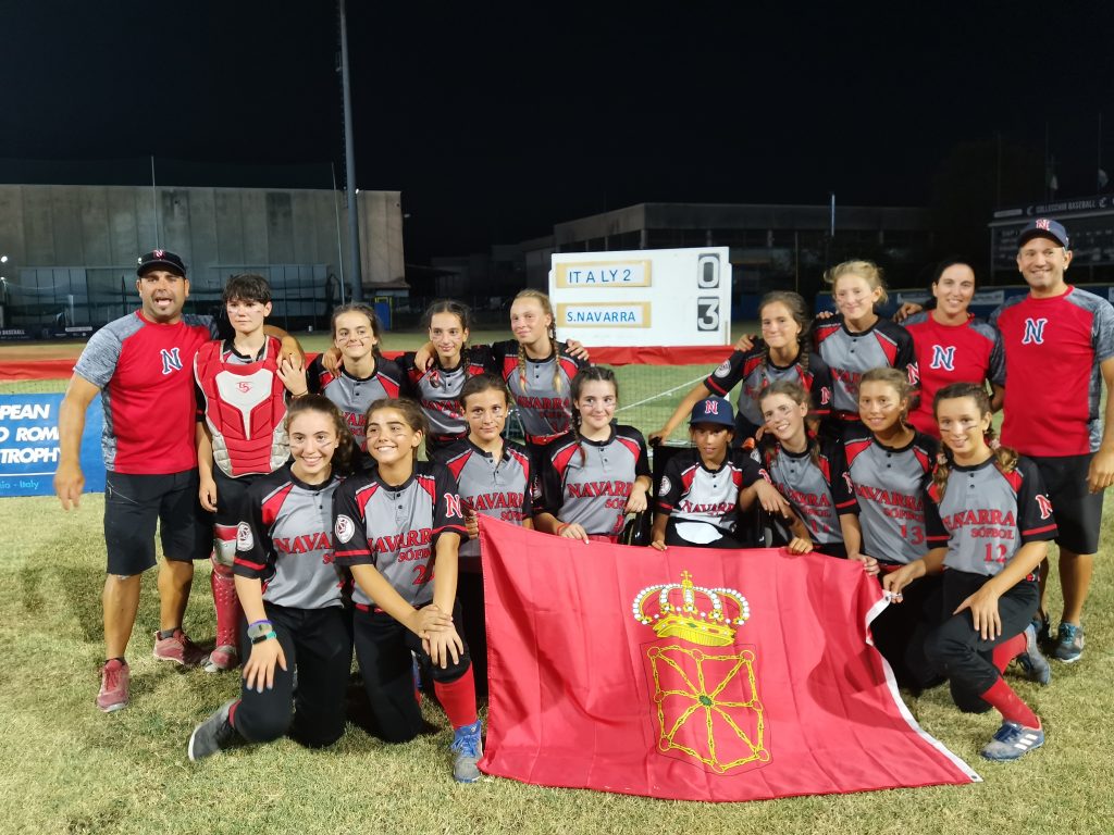 La selección navarra sub 13 de sófbol femenino se proclamó ayer campeona del “European Massimo Romeo Youth Trophy – EMRYT, un campeonato internacional aprobado en el calendario oficial de la WBSC Europe (World Baseball Softball Confederation- División Europa). En este torneo, el más conocido en las categorías inferiores en Europa, tiene un formato abierto, en el que pueden participar tanto clubes, como selecciones regionales o nacionales. En 2020 y 2021 el “Massimo Romeo” no se pudo disputar , debido a la pandemia, y tal vez por esto la participación ha sido menor que otros años, pero desde luego que el nivel deportivo y la exigencia han sido altos, algo deseado por los directivos y entrenadores de la Federación Navarra. Y es que Navarra fue Campeona de España de selecciones sub 13 en el año 2021, y al no disputarse este año el Campeonato de selecciones, la FNBS decidió emprender este reto deportivo, que ha contado con el apoyo firme del Instituto Navarro del Deporte.