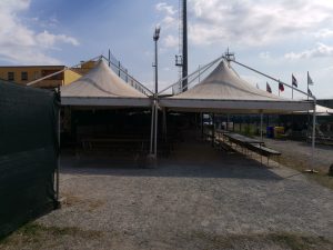 Ceremonia inaugural, en el campo de béisbol de Collechio, con la presencia de Gabriel Waage (presidente WBSS Softball Europa) , autoridades y la viuda de Massimo Romeo.