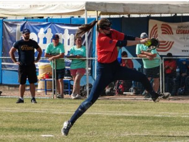 Helena Carpio, lanzadora de Navarra en la final, dirige su tiro a home. Foto cortesía de #Emryt CBS Collechio .