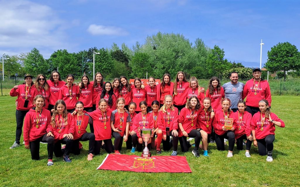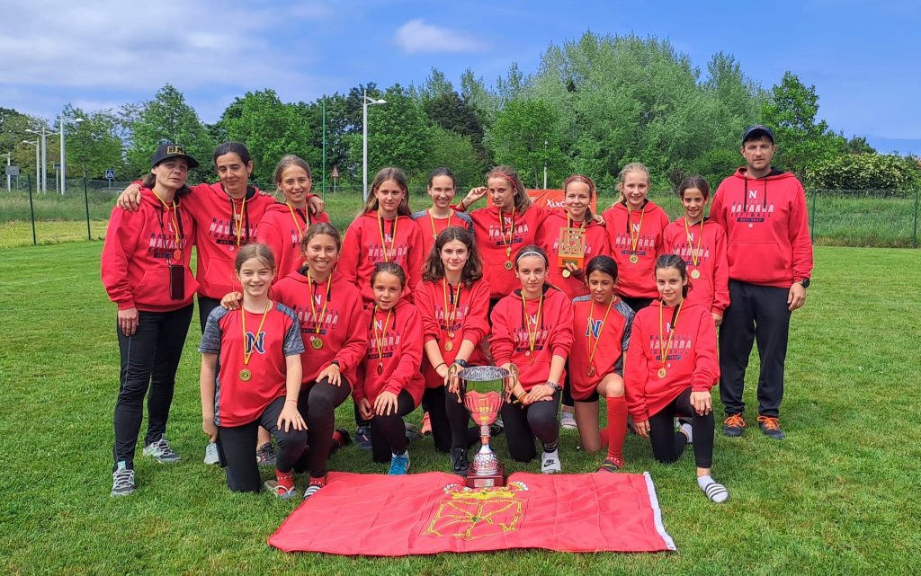 Este fin de semana en Asturias, la selección navarra de sófbol femenino sub-13 se ha proclamado campeona de España de su categoría. Nuestras chicas no empezaron bien el torneo y perdieron su primer partido frente a Madrid por un ajustado 7-6. Lejos de venirse abajo, nuestras fieras navarras sacaron todo su poderío en sus dos siguientes encuentros, venciendo sin problemas a Asturias por 11-5 y a Valencia por 10-2. De esta manera, las sub-13 consiguieron su pase a la ansiada final del domingo. En la final, tuvieron que enfrentarse a la poderosa selección madrileña, que ya había conseguido derrotarlas en su primer partido del torneo. Esta vez, el encuentro fue por otros derroteros y nuestras chicas controlaron el partido en todo momento. El resultado final: 9-6 para Navarra, toda una alegría para el sófbol de nuestra Comunidad que ve con orgullo lo bien que nuestros clubes están trabajando la cantera. Destacar la labor de Ana Contín, que fue nombrada MVP de la selección Navarra en el campeonato. Este torneo parece que solo es el principio, las campeonas de España sub-13 de 2023 tienen sófbol para rato.