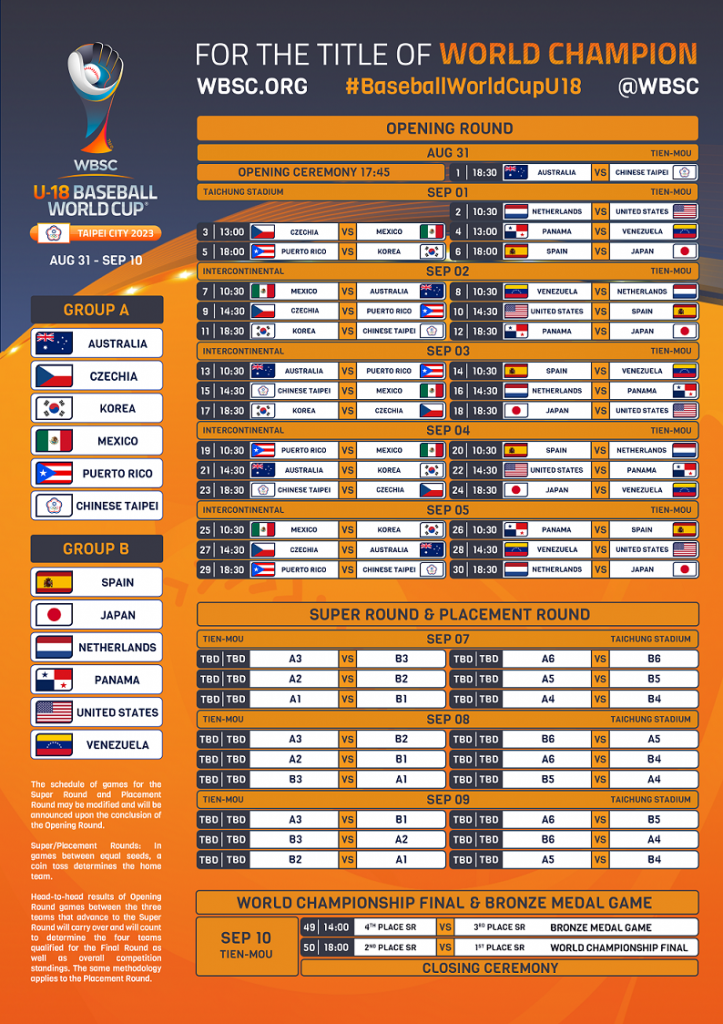 Grupos y calendario del Campeonato del Mundo de béisbol Sub-18