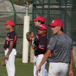 En el Colegio Irabia de Pamplona comenzó el Torneo 75 Aniversario de la Federación Navarra de Béisbol y Sófbol, con el partido entre nuestras dos selecciones navarras – la Absoluta y la Sub-23. Este primer duelo se lo llevó la selección Navarra Absoluta, que tras un duro partido, consiguió vencer a la Selección sub-23 por un apurado marcador final de 3-2. El combinado absoluto comenzó fuerte con dos home runs consecutivos en la primera entrada del primer y segundo al bate, Okaury Montero y Diego Pérez. Reinaldo Rodríguez tiró de veteranía y dominó al combinado sub-23 desde la loma durante las 4 primeras entradas del partido, consiguiendo 7 strike outs y permitiendo una sola carrera. A pesar de eso, la buena labor a la defensiva de los Sub-23, sumada a un buen trabajo de sus lanzadores: Lucas Calvo, Diego San Miguel e Izan Sánchez, les mantuvo en el partido, llegando a la sexta entrada con un marcador de 3-1. En esta sexta entrada los Sub-23 recortaron distancias colocándose 3-2 y con posibilidades claras de empatar o incluso vencer el encuentro, ya que en esta entrada consiguieron llenar las bases y poner en apuros a la Selección Absoluta. Sin embargo, Francisco Kingsley supo cerrar el encuentro y llevar la primera victoria para la Selección Navarra Absoluta. Queremos destacar la labor al bate de David Arza de la Selección Sub-23, que consiguió 3 de 3 en sus turnos al bate, anotando las dos carreras de su equipo.