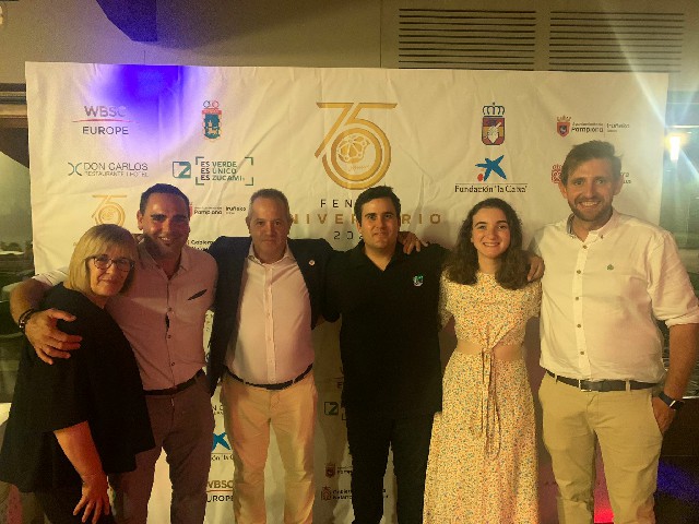 Tras el comienzo de los partidos del Torneo con las selecciones navarras, Cataluña y Academia Francia, la Federación Navarra continuó la celebración de su 75 Aniversario con la Cena de Gala, en el Hotel Don Carlos, a la que asistieron numerosas personas pertenecientes al presente y al pasado de nuestro béisbol y sófbol, tanto directivos, como entrenadores/as y jugadores de todas las épocas, ex-presidentes de la Federación, así como representantes de las instituciones deportivas navarras, la Federación Española y de las entidades locales que nos apoyan con sus instalaciones. También nos acompañaron representantes de ZUCAMI, patrocinador de la Federación, así como varios familiares de José Aguadero, pionero del béisbol y sófbol en Navarra y figura destacadísima en nuestra historia.