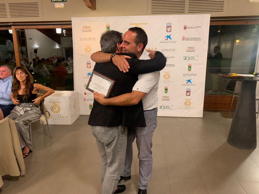 Es de agradecer especialmente la presencia de Gabriel Waage, Presidente de la World Baseball Softball Confederation – Europe, quien se desplazó desde República Checa hasta Pamplona para acompañarnos, quien en su saludo inicial felicitó a la Federación, agradeció el trabajo realizado en Navarra por desarrollar el sófbol y el béisbol, y aportó todo su apoyo para el Europeo de Sófbol sub 18 que se disputará en Navarra en 2025. No faltó a la cita Begoña Pérez, Vicerrectora de Proyección Universitaria de la UPNA, a la que Pablo Carpio agradeció su apoyo para confirmar el proyecto de campo de sófbol en esta Universidad.