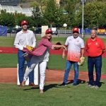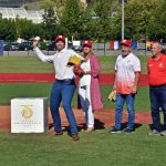 El saque de honor del encuentro corrió a cargo de Jorge Aguirre, Director Gerente del Instituto Navarro del Deporte; Natalia Mateo, Directora de Compras de Zucami; Jesús Lisarri, Presidente de la Real Federación Española de Béisbol y Sófbol y Pablo Carpio, Presidente de la Federación Española de Béisbol y Sófbol.